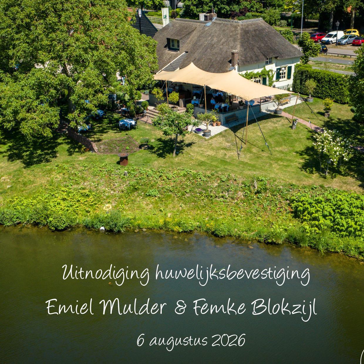 Uitnodiging daggasten bruiloft Emiel & Femke, tik op de afbeelding om door de uitnodiging te bladeren